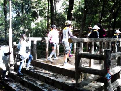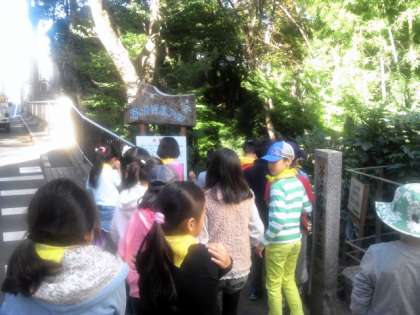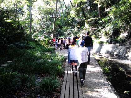 等々力渓谷に到着しました。自然豊かな渓谷を散策しています。