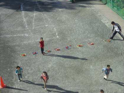 屋上から富士山がきれいにみえる晴天のなか、山崎スポーツタイムを行いました。種目は低学年が「置きかえ走」、中学年が「Pターン」、高学年が「ボール渡し」です。校庭の冬芝のかけられていた保温シートも外れ、緑の芝が顔をだしました。もう少し、日光の光を浴びさせ、強い芝にした後で開放します。もうしばらく養生します。