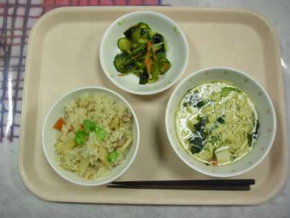 たけのこは、春が一番おいしい季節です。給食室で朝早くからやわらかくなるまで下ゆでしたたけのこがたくさん入っています。