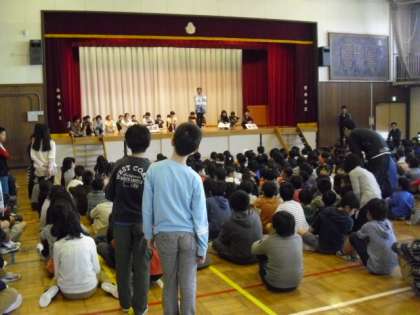 13日に発足した委員会の委員長、運営・代表委員が活動についての紹介を行いました。各委員会の委員長からそれぞれの活動についての紹介やみんなへのお願いがありました。運営・代表委員の人も学校を良くするため頑張ることをしっかりと発表しました。一人ひとりの頑張りと学校全体での協力に期待しています。