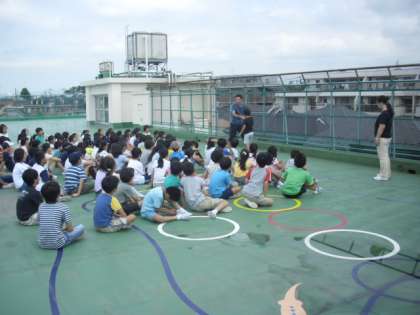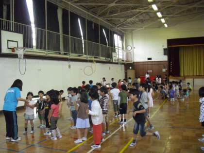 運動会後、初めての山スポタイム(体育朝会)を行いました。低学年は体育館で投げる運動、中学年は屋上で「ひざにタッチ、肩にタッチ」、高学年は校庭で「ゴムとびくぐり」に取り組みました。今年も山スポタイムで体力向上を図っていきます。