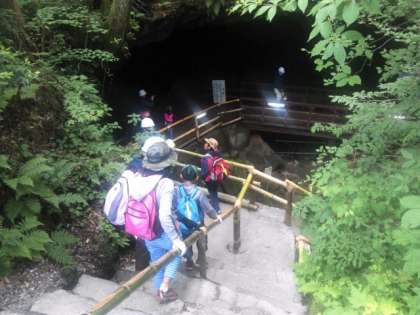 氷穴を見学しました。穴のなかは、0℃で刺激的な冷たさです。