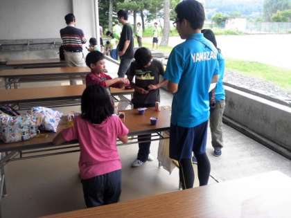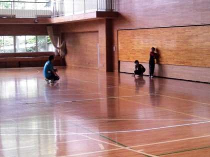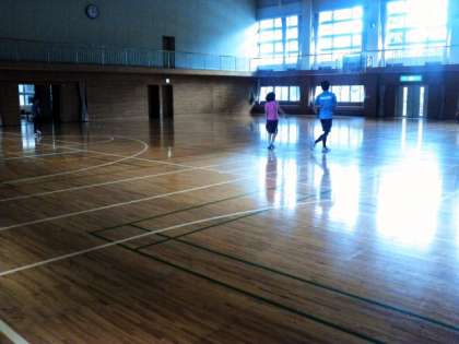 学園までバスで戻りおやつをいただきました。入浴までの時間、広い体育館で元気に遊んでいます。