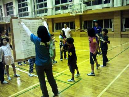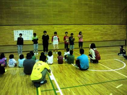 山崎小は、歌を担当しました。歌は、4校のテーマソングの「にじ」です。みんなで元気に歌いました。今年で移動教室が終わる6年生からのメッセージで子ども会は終わりました。今日のプログラムは全て終了です。