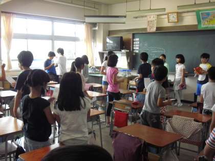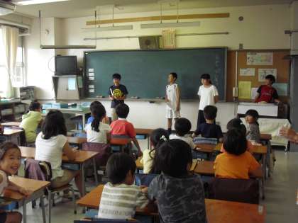 今年度1回めの「なかよしタイム」を行いました。1年生から6年生までの縦割り班での活動です。各教室に集まって、6年生を中心に自己紹介ゲームをしました。1年間なかよく活動してほしいと思います。