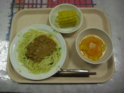 “とうもろこし”は、2年生が皮むきのお手伝いをしてくれました。“とうもろこし”には、わたしたちの体のエネルギーになる炭水化物や体の健康に必要なビタミンB1・ビタミンB2・ビタミンEがたくさん含まれている栄養満点の食材です。