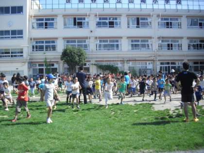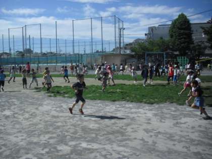 1学期最後の児童集会は、校庭で「バナナおに」をして楽しみました。朝から気温が高くなっていなしたが、みんなで元気に楽しく取り組みました。
