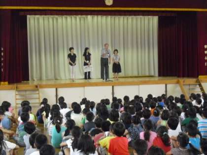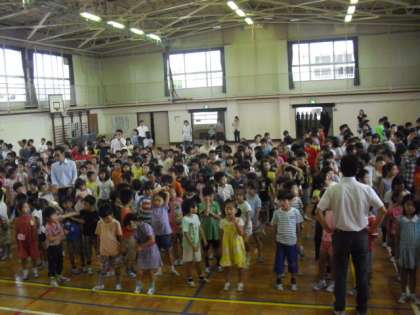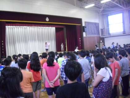 75日間の1学期が今日で終わり、終業式を行いました。3年生の代表が1学期にがんばったことをしっかりと発表してくれました。夏休みはけがや病気をせずに有意義に過ごしてほしいと思います。終業式終了後は、今年も図書室開放でお世話になる地域の方にございさつをしました。プールのある日は、プールだけでなく、図書室にもよって読書に親しんでください。
