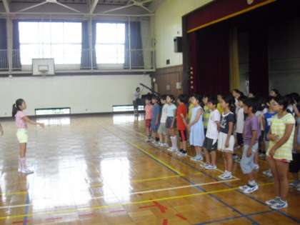 明日から、5年生が楽しみにしている夏季舟形交流が始まります。今日は、舟形小で行われる歓迎式等の練習をみんなでしました。台風の影響も考えられますが、子どもたちの安全を第一に楽しい交流をしてきます。
