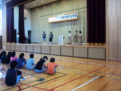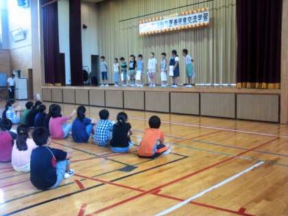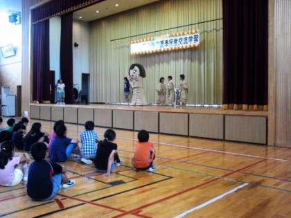 お迎え集会では、4年生が舟形の紹介を楽しくしてくれました。女神ちゃんも舟形小にやってきました。
