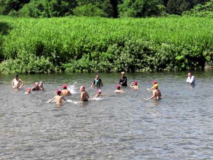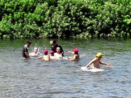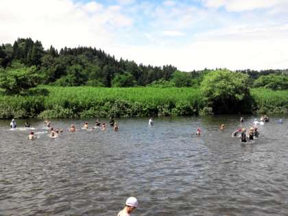 水遊びの2回めが始まりました。一緒に川に入ってくれているお父さんたちとも楽しく遊んでいます。