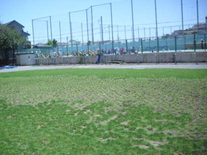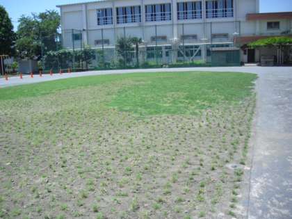 校庭の芝生のはげてしまっていた所に芝を植えました、夏休み中は養生期間として芝生の中には入れなくなります。8月29日(土)の山崎子どもまつりの日には、青々とした芝生の上で活動できるようにします。お楽しみに。