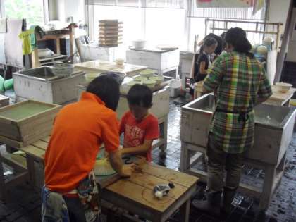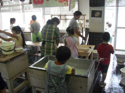 今日から、伝統工芸室の「夏の教室」が始まりました。今年も和紙でオリジナルの「うちわ」を作ったりします。24日(金)27日(月)28日(火)の4日間開催します。