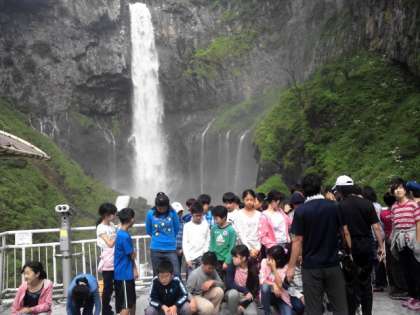 華厳の滝を見学しています。水量が多いです。