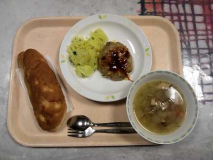 アップルチーズハンバーグには、ぶた肉、たまねぎ、刻んだリンゴやチーズが入っています。りんごの甘酸っぱさとお肉が絶妙なおいしさです。
