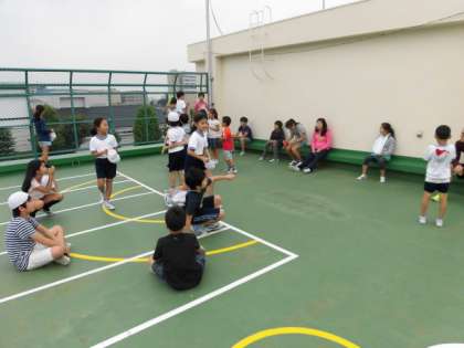 2学期最初のなかよしタイムを行いました。天気が心配されましたが、校庭でも屋上でも、活動ができました。6年生が準備した遊びをみんなで楽しみました。2学期もなかよく活動してほしいと思います。