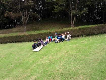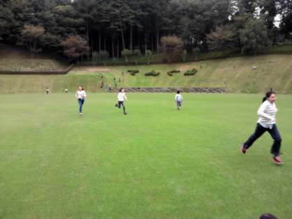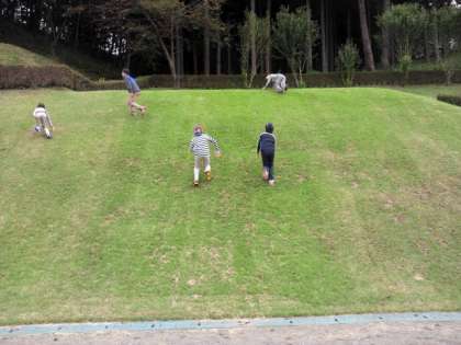早めに下山できたので天狗山公園の芝生で遊んでいます。まだまだ元気です。