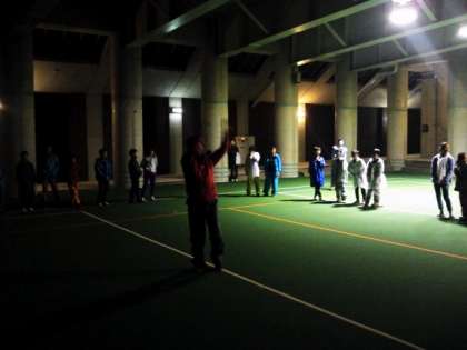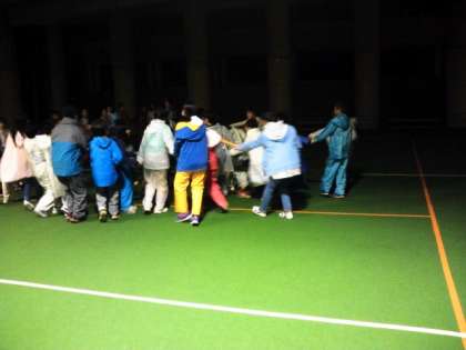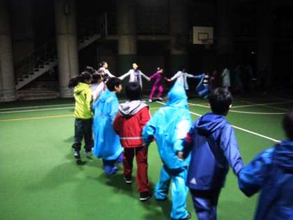 山登りから帰ってきてから降り出した雨が強くなり、残念ながら、外でのキャンプファイヤーはできません。代わりに屋根付き広場で雨バージョンのキャンプファイヤーを行ってきます。