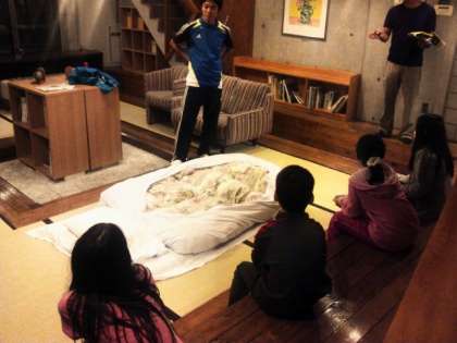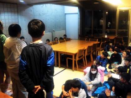ドキドキした肝試しが無事終わり、2日めも就寝の時間です。今日は、たくさん歩いて疲れています。しっかり休みましょう。おやすみなさい。