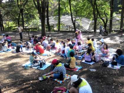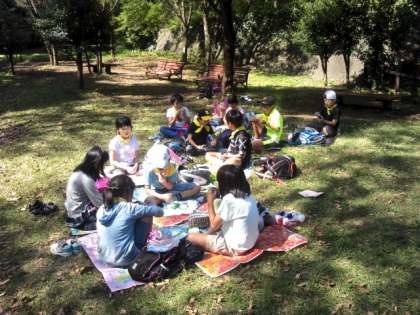 見学のあとは、遠足の楽しみ、お弁当タイムです。たくさん歩いたあとのお弁当は格別です。グループごとにおしゃべりしながら楽しく食べています。
