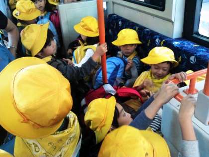 靴の泥をしっかり落とし、深沢小学校でトイレを借りて、バスに乗って帰ります。