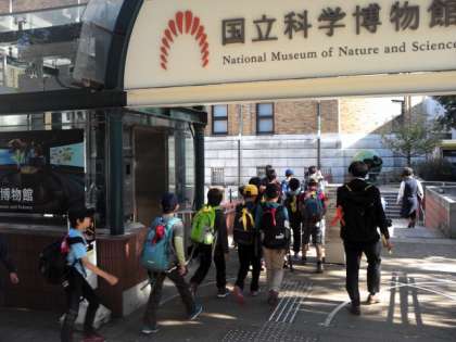 弁当を終えて、国立科学博物館に到着しました。これから、活動班ごとに協力して見学です。