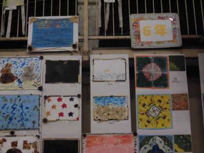 平面作品「絵の具をつくろう・絵の具で描こう」「4分の1彫り進み版画」