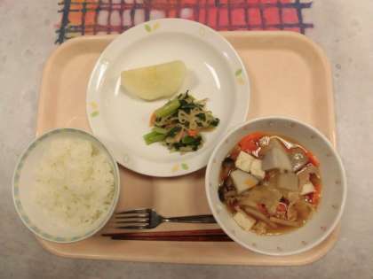舟形小学校(山形県)で、5年生が総合の時間に作ったお米です。秋季交流のお礼にいただいたお米です。”いも煮汁”は、さといもを使った山形県の代表的な郷土料理です。寒い地方ならではの温かい料理です。