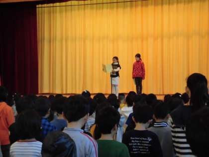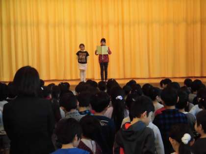 13日間の冬休みを終えて子どもたちが元気な顔で学校に戻ってきました。短い3学期ですが、1年間のまとめの大切な学期です。始業式では、4年生の代表の二人が3学期の抱負をしっかりと発表してくれました。一人ひとりしっかりとめあてをもち学校生活を充実してほしいと思います。3学期もよろしくお願いします。