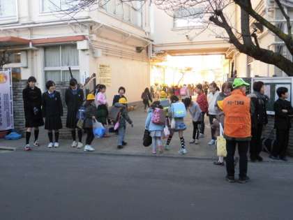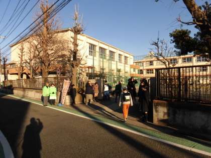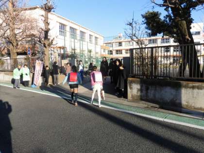 あいさつ週間も3日目になりました。今日は4年生が当番であいさつに立ちました。昨日に引き続き来てくれた世田谷中学校の生徒の皆さんと一緒に元気にあいさつをしてくれました。