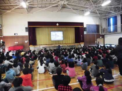 体育館で、クラブ紹介集会を行いました。今年のクラブ紹介は、事前に活動の様子をタブレットで撮影したものを体育館で流しました。クラブを経験している4・5・6年生だけでなく、4月からクラブを始める3年生、そして1.2年生もみんな画面に映し出される活動の様子をしっかりと見ていました。15日(月)は、3年生のクラブ見学をします。3年生は、楽しみにしていてください。