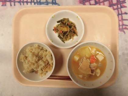 とん汁には、ぶた肉、にんじん、だいこん、じゃがいも、ねぎ、こんにゃく、とうふなどたくさんの食材が使われています。肉と野菜の栄養がスープにたっぷり溶け込んでいます。特に、ぶた肉には、糖質を体のエネルギーにかえるビタミンB1が豊富に含まれています。