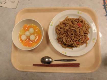 「フルーツ白玉」は、6年生のリクエストの中で上位のメニューです。「フルーツ白玉」に使われているシロップは学校で手作りしています。桜桃、みかん、パイナップルが入っていますが、フルーツにはビタミンやミネラルが豊富に含まれています。からだの調子を整えるのに必要な栄養素です。