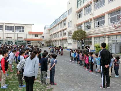 新年度が始まり、2週目を迎えた今朝、1年生と2年生から6年生までがはじめて会う対面式を行いました。前に並んだ1年生、校長先生のお話もしっかり聞くことができました。新しい友達を迎え、2年生から6年生までも笑顔がいっぱいでした。