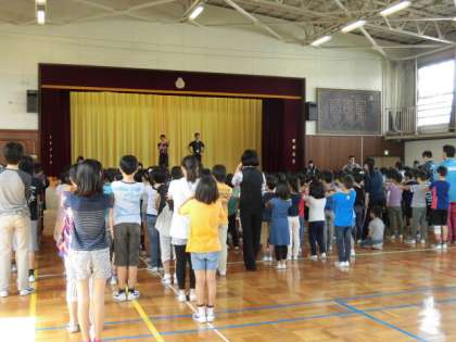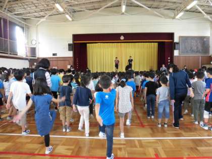今日の山スポは、全校で運動会の練習をしました。「気を付け・前ならえ」、「回れ右」、行進の練習です。開会式、閉会式のときなどの基本となる動きです。1年生も手をまっすぐに伸ばして「前ならえ」をすることができました。それぞれの学年の練習も始まっています。運動会当日が本当に楽しみです。