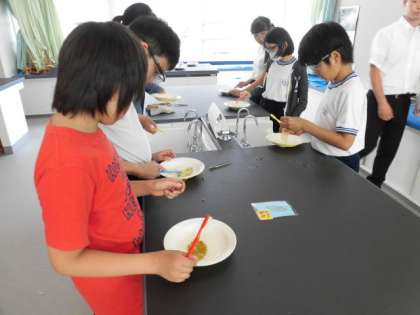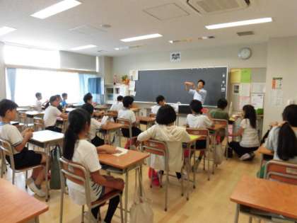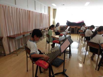 写真は、音楽、数学、理科の授業の様子です。みんな真剣に取り組んでいます。
