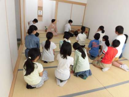 世田谷中学校での授業の体験の後は、部活動の体験も行いました。こちらもそれぞれが希望する部で活動しました。写真は、左から、奉仕活動、茶道、演劇です。