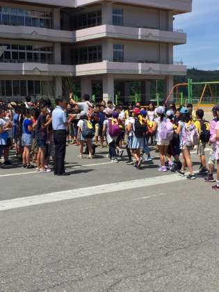舟形小学校に着きました。大歓迎を受けて、子どもたちも感激しています。