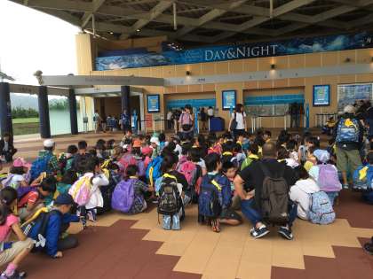 台風で延期となっていた江ノ島水族館への遠足でした。本日、無事に行くことができました。水族館の方のお話を聞いたあと、イルカショーを見て、早めのお弁当を食べました。そのあとはグループごとの見学になります。3,4年生、協力して楽しく見て回ることができるとよいです。