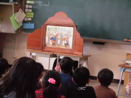 梅ヶ丘図書館の方によるお話会がありました。絵本の読み聞かせ、紙芝居、語り、落語と盛り沢山の内容でした。集中して、時には、大笑いをして、子どもたちはお話の世界を楽しみました。明日は、2年生のお話会があります。