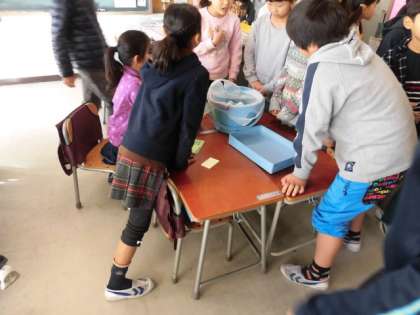 昨日までの2回のなかよしタイムで準備をしてきた校内オリエンテーリング、今日の本番は、全校のみんなで楽しむことができました。なかよし班を2つのグループに分け、前半はお店をやる、後半はお店を回る(もう1つのグループは逆)活動をしました。5,6年生がリードして下学年のみんなをまとめました。