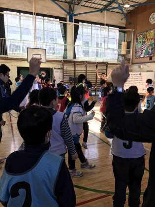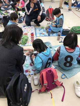 「猛獣狩りをしようよ」のゲームは、とても盛り上がりました。ゲームのあとは、仲良くなったチームでお弁当を食べました。
