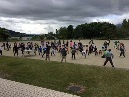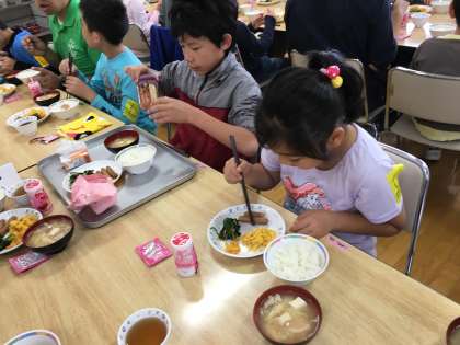 昨日は、キャンプファイヤーではなく、室内でこども会をしました。昨夜はみんな、しっかり睡眠をとることができました。朝の会、朝食の様子です。このあと、サファリパークへ行きます。