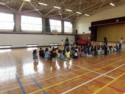 仲よし学級のみんなともっと仲良くなってほしいと願い、「仲よし学級の友達とあそぼう」という会を開きました。自己紹介のあと、仲間集め、猛獣狩りへ行こうよ、じゃんけん列車のゲームをしました。これからも、休み時間などに一緒に遊ぶことが多くなるといいなあと思います。