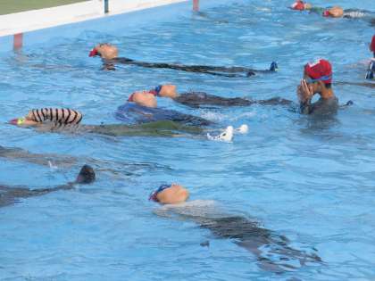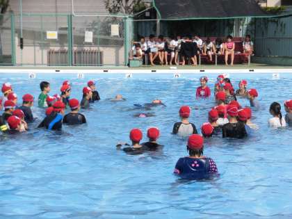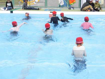 本日は水泳指導の最終日でした。4年生と5年生は着衣泳を行いました。服のまま水の中に入ると、いかに泳ぎにくいか、重いかを実感しました。その上で、どのようにすれば浮いていることができるか試してみました。万が一、海や川に落ちてしまったらどうしたらよいか、真剣に考えることができました。