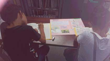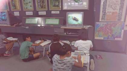 4年生は、教育センターに来ています。プラネタリウムで太陽、月、星の学習をした後、郷土学習室で世田谷区について、自分が決めた課題を調べる学習をしています。
