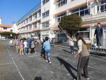 久しぶりの晴天の朝です。長縄週間の最後に、長縄記録会を行いました。今回は、雨天のことが多く、あまり練習できなかったのですが、それでも最後に自分たちの記録を伸ばすことに挑戦しました。最後に、来週になった連合運動会に向けて、6年生のお姉さん、お兄さんに、「連合運動会、がんばってね。」と、みんなで拍手を送りました。