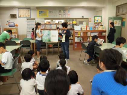 今週の月曜日から読書旬間が始まっています。各ご家庭においては、家庭読書に取り組んでいただいていることと思います。ご協力ありがとうございます。学校でも、各学級の取組のほか、図書委員会が大型絵本の読み聞かせなどを行っています。今日は「にじいろのさかな」でした。