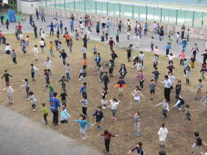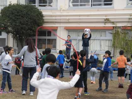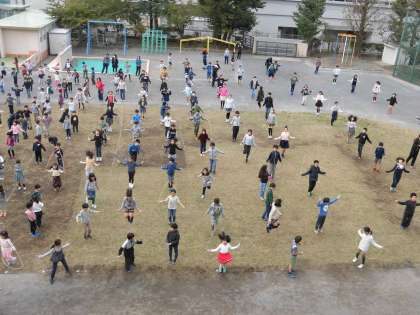 今日の山スポは、リズム縄跳びをしました。「夢をかなえて ドラえもん」の曲に合わせて跳びます。これから、体育の時間も含め、全校で短縄跳びに取り組んでいきます。
