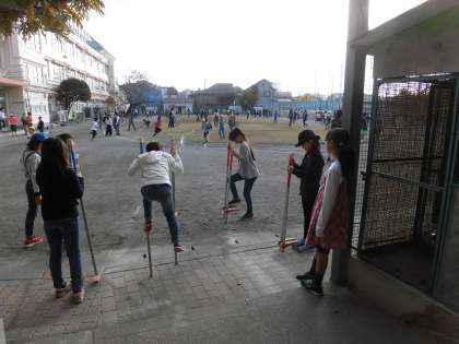 今日が最終日となりました。本校のご家庭でホームステイした舟形の子たちも登校すると朝遊びの時間、いっしょに遊びました。